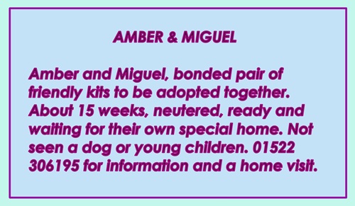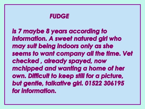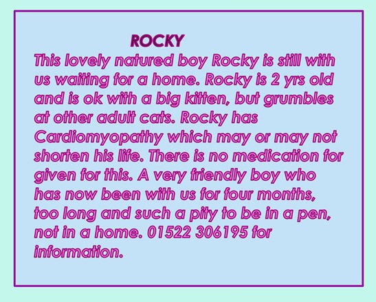 Cats needing homes P2 If you would like to make a donation direct details are on contact page Contact Us If any cats on this page interest you please call 01522 306195 for more information and to arrange a home visit.