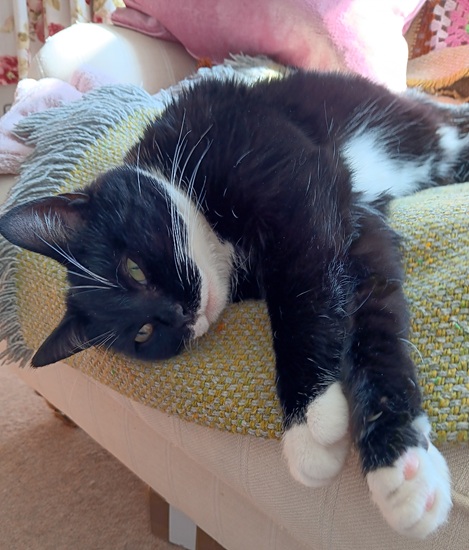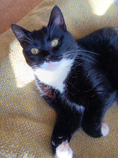 She has had her injections, and likes to be out in the garden but seems equally happy snoozing on her chair.